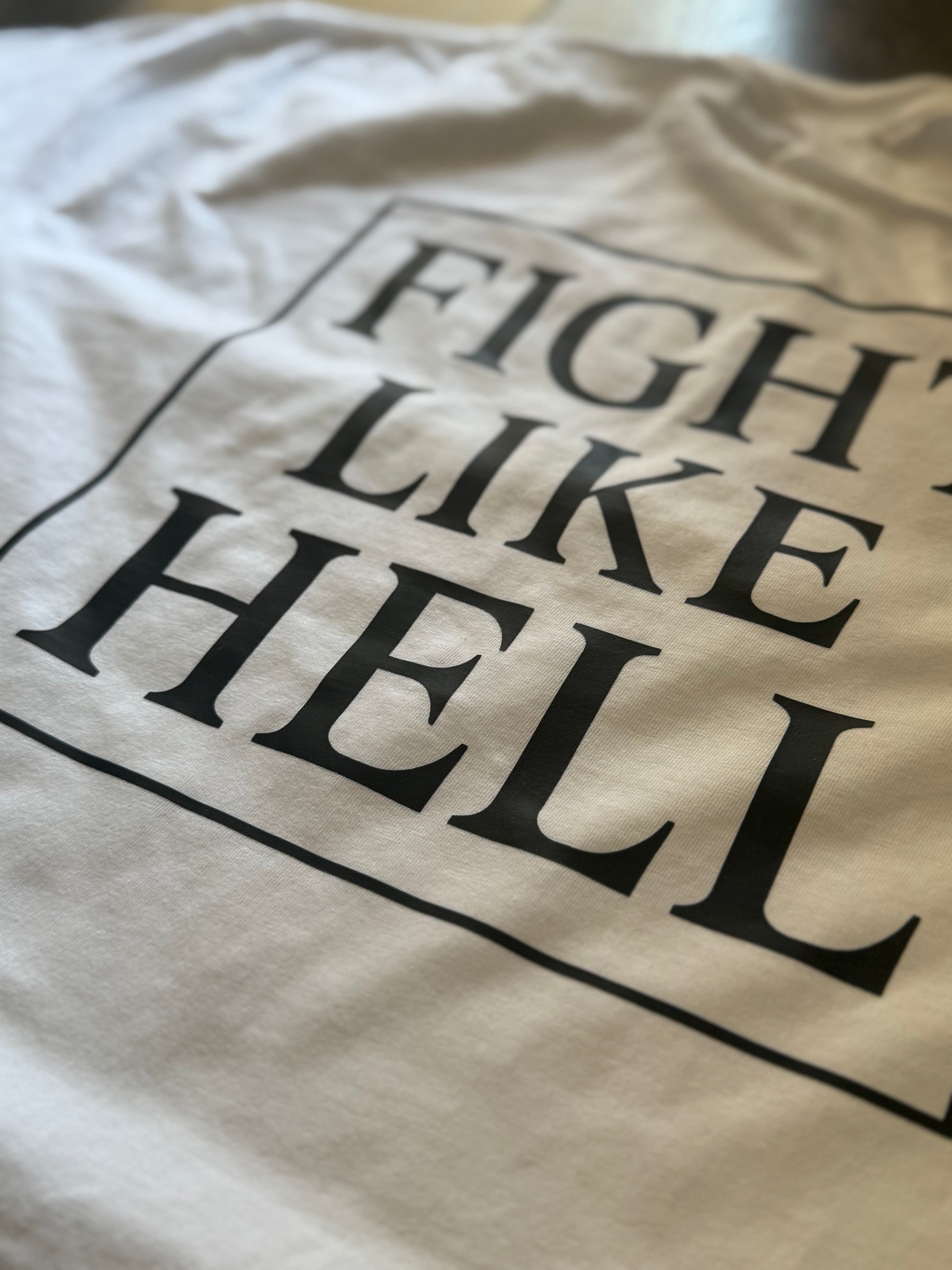This tee is perfect for anyone battling cancer, standing with a loved one, or simply fighting for something they believe in. Bold and unapologetic, our "Fight Like Hell" tee is designed for the warriors and supporters who refuse to back down. Featuring a striking vintage-inspired design, this shirt is a symbol of courage and determination. Crafted from a soft, durable cotton blend, it’s comfortable enough for everyday wear and powerful enough to make a statement.
